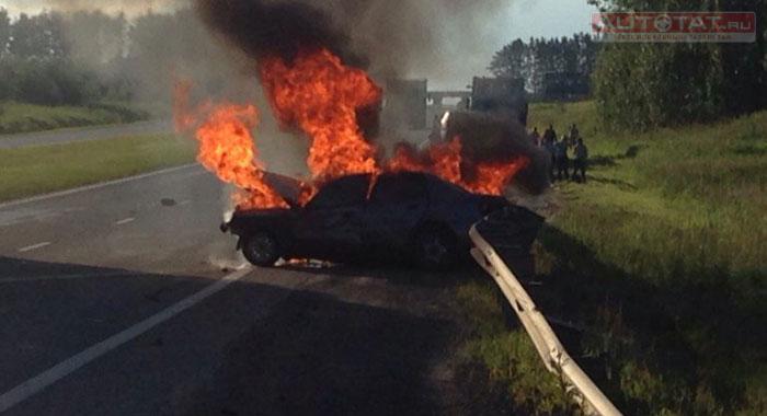 В Татарстане взорвался автомобиль в результате ДТП. ВИДЕО