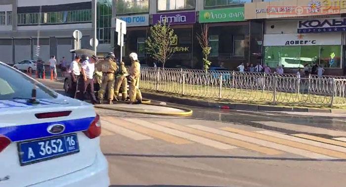 В центре Казани инспекторы ГИБДД смотрели как горит иномарка