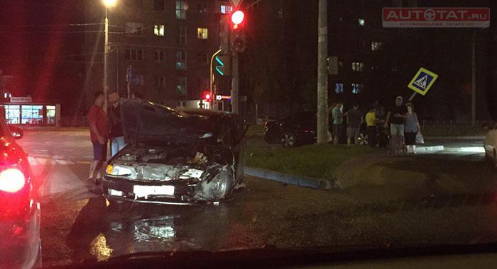 В Казани водитель ВАЗ-2114 решил проскочить на красный и попал в ДТП