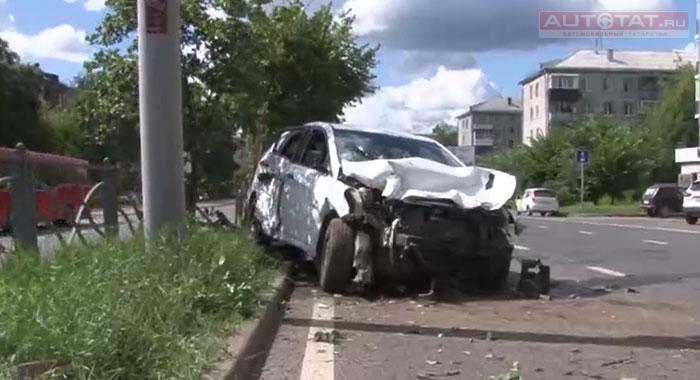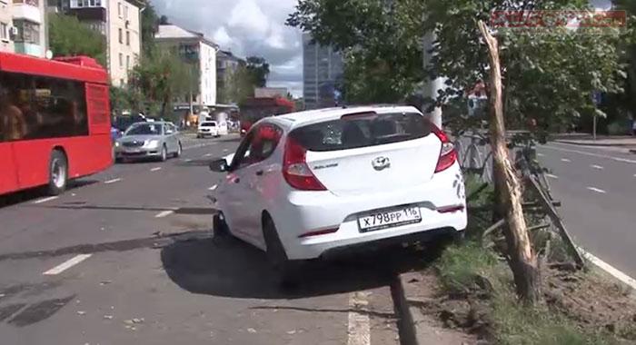 В Казани иномарка протаранила забор и повалила дерево. ВИДЕО