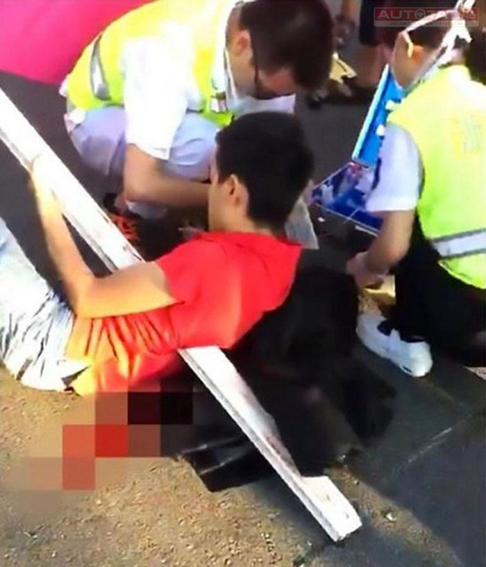 Байкер выжил после того, как отбойник проткнул его насквозь