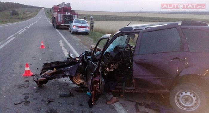 В Арском районе Татарстана лоб в лоб столкнулась LADA Kalina и Land Rover. В результате ДТП два человека погибли на месте.
