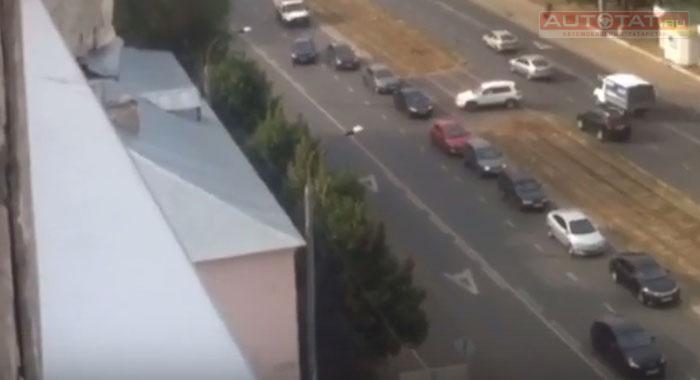 Казанец проскочил место разворота и начал сдавать назад на оживленной дороге
