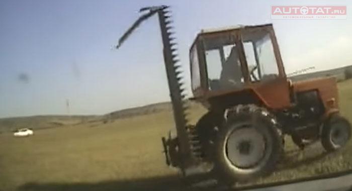 Пьяный тракторист пытался уйти от полицейской погони, видео