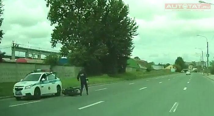 Байкер пытался уйти от погони ДПС, но врезался в их авто