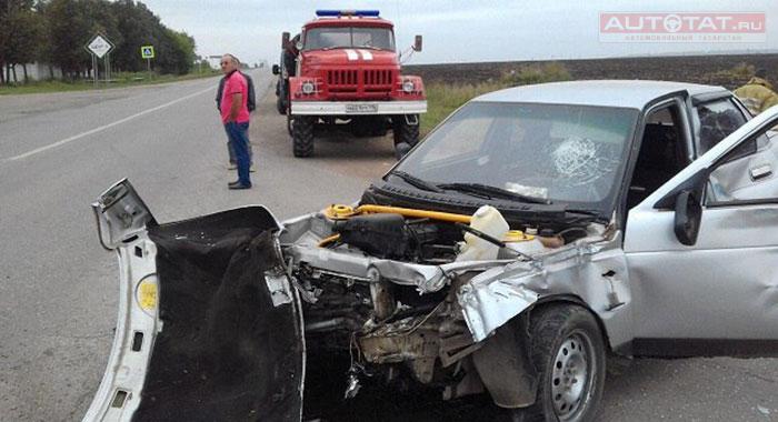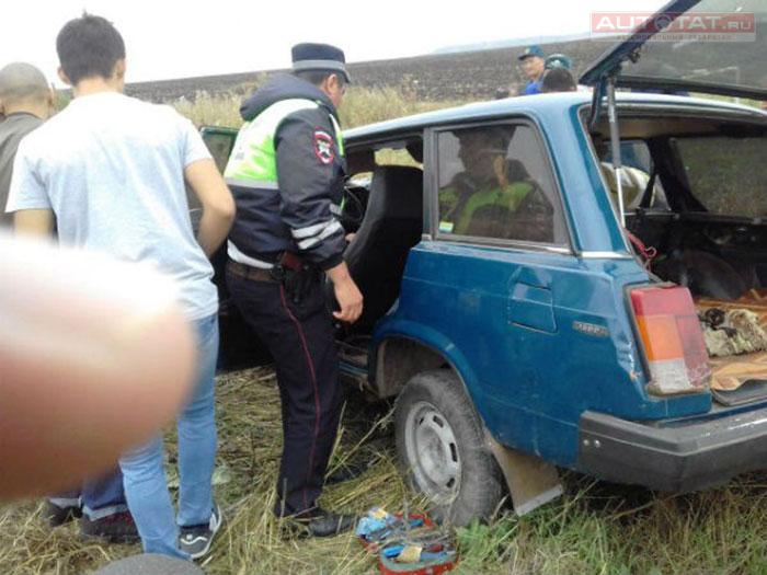 Авария произошла на трассе Альметьевск-Азнакаево. По предварительной информации, один из участников ДТП выехал на встречку, где столкнулся с другим автомобилем. В результате ВАЗ-2110 и ВАЗ-2104 вылетели с дороги.