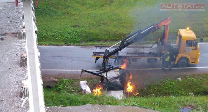В Елабужском районе погиб водитель, упав с моста на автомобиле.