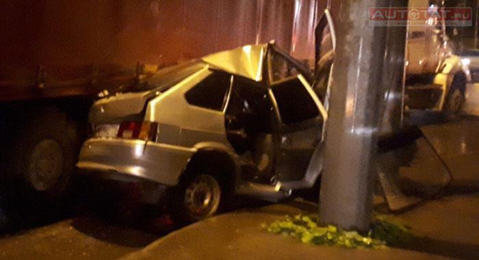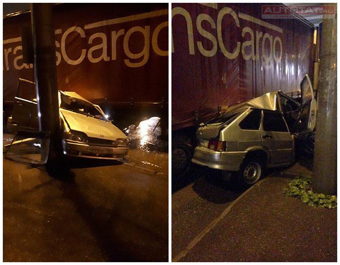 Судя по сообщениям очевидцев, авария случилась поздно вечером на Сибирском тракте. По предварительной информации, водитель легковушки пытался проскочить перед фурой, но оказался зажат между ней и столбом освещения.