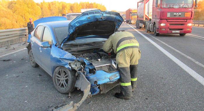 В Татарстане при столкновении трех авто на трассу вылилось 200 литров топлива