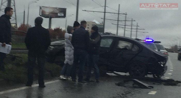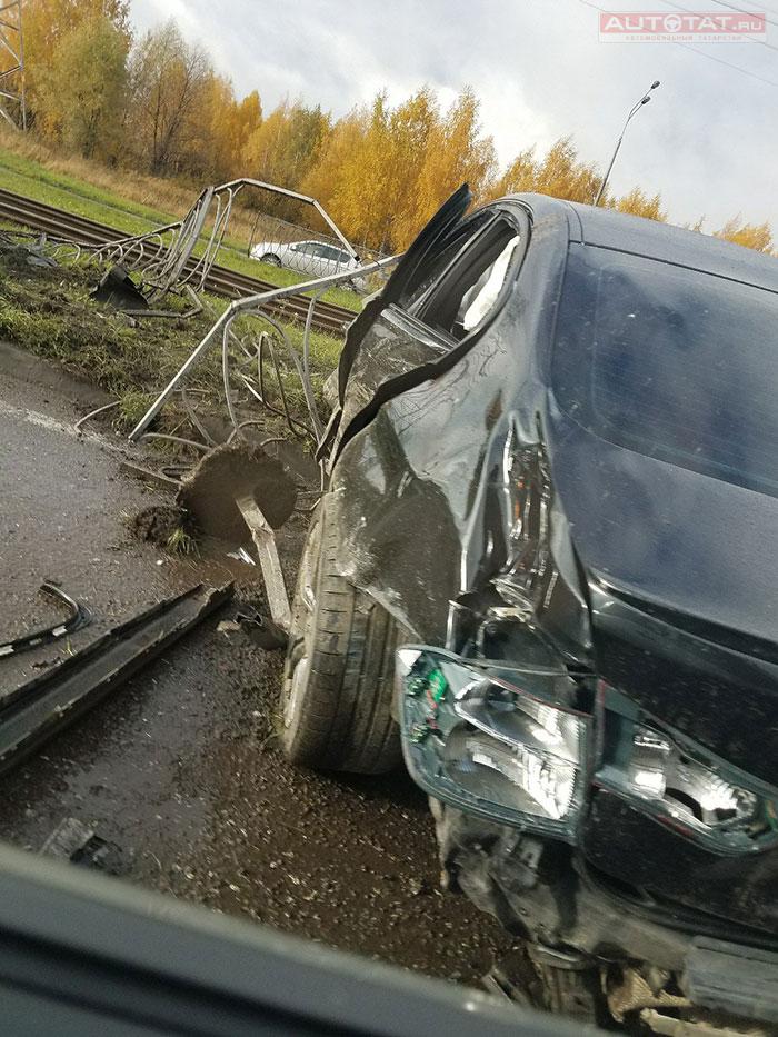 В Казани лихач врезался в дорожное ограждение. ФОТО
