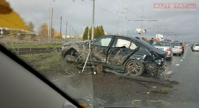 В Казани лихач на BMW снес дорожное ограждение на скорости 200 км/ч