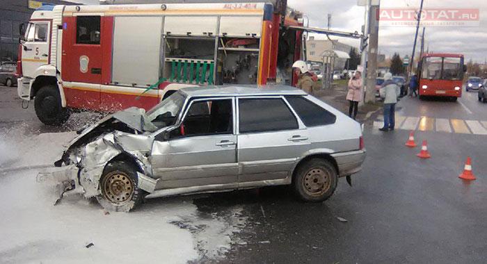 Подробности столкновения грузовика и ВАЗ-2114 в Казани