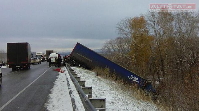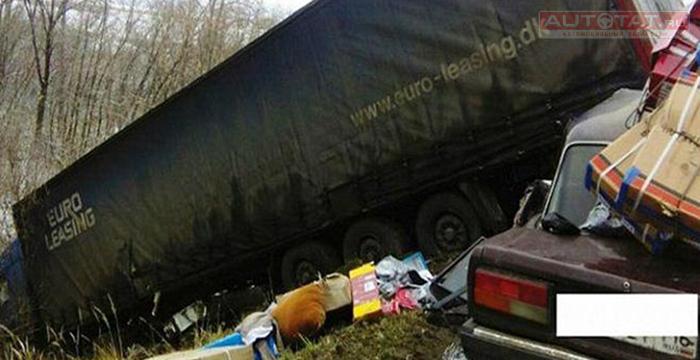 В Татарстане легковушка влетела в прицеп вылетевшей в кювет фуры.