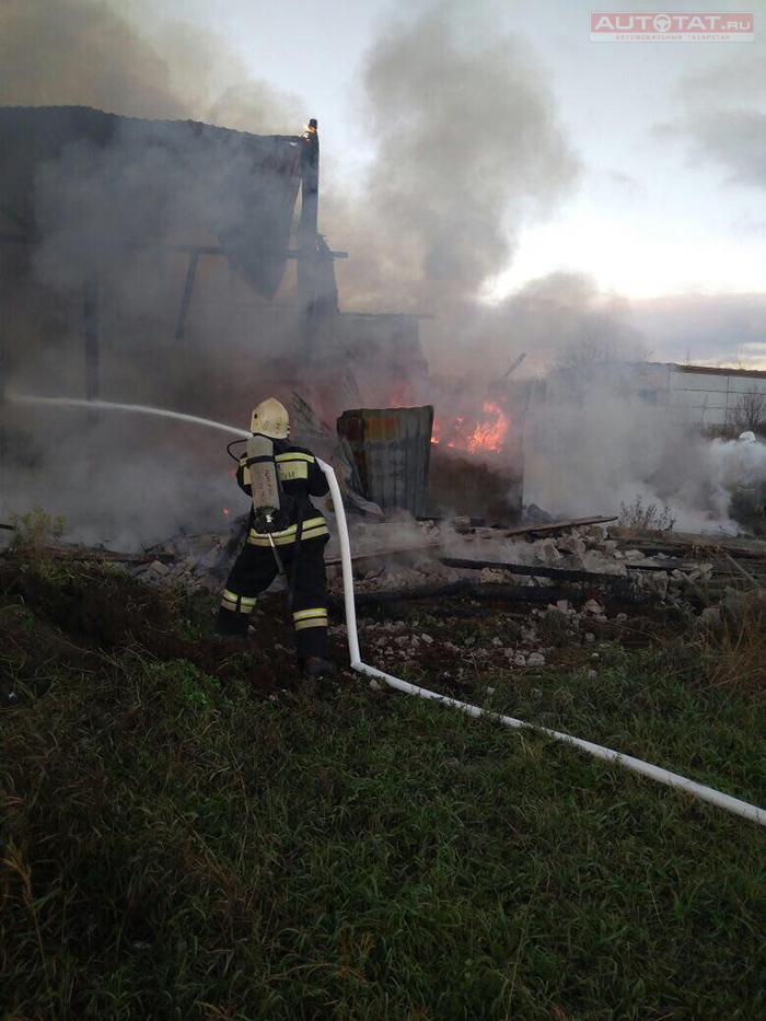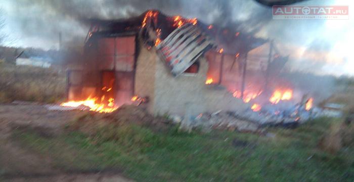 Инцидент случился утром в деревне Новый Мусабай в районе местных гаражей. Прибывшие на место пожарные обнаружили горевшее строение и грузовик внутри.