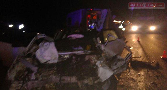 Водитель иномарки погиб после столкновения с автовозом в Татарстане. Появилось видео.