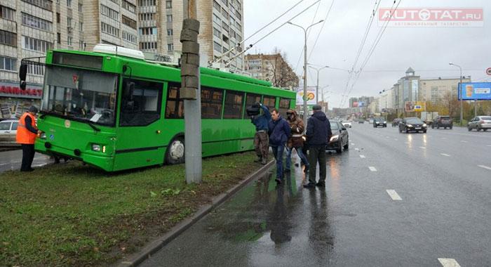 В Казани троллейбус выехал на газон. Появилось видео ДТП.