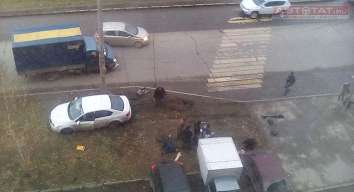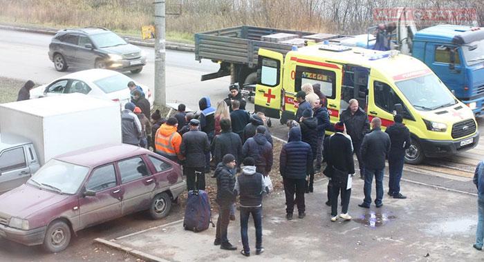 Вчера после обеда, 14 ноября, на ул. Адоратского произошло столкновение двух автомобилей, один из которых вылетел на остановку общественного транспорта и сбил трех пешеходов.