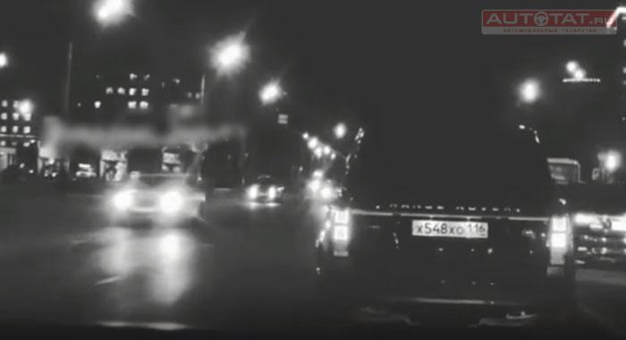 В центре Казани автохамы ехали по встречке и мигали дальним светом