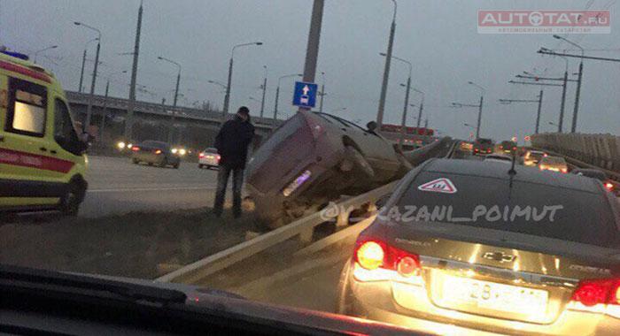 Момент ДТП с врезавшимся в отбойник Рено в Казани попал на видеорегистратор.