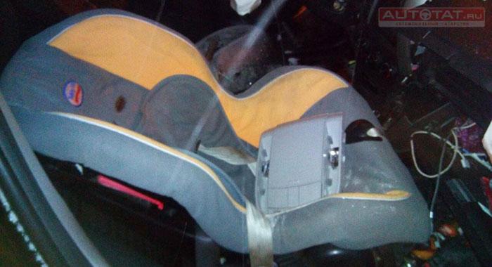 К счастью, ребенок находился в детском удерживающем устройстве, а вся сила удара пришлась на переднюю часть автомобиля.
