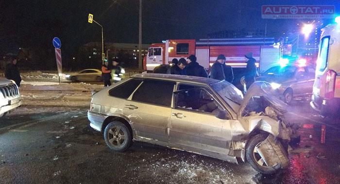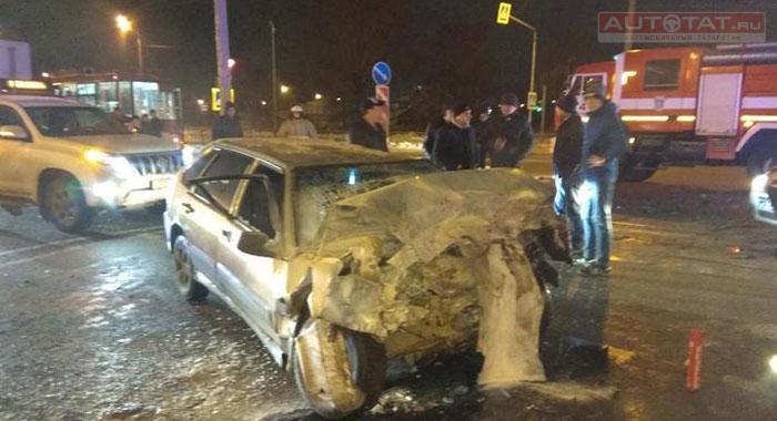 В Казани легковушка протаранила трамвай и задымилась