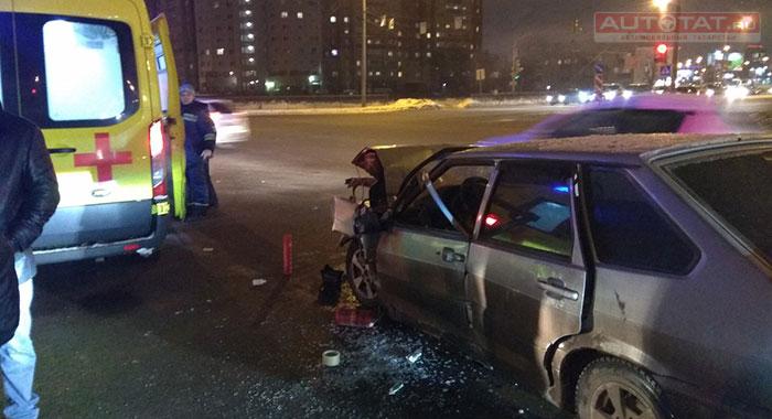 В Кировском районе Казани произошло серьезное ДТП. Водитель ВАЗа пытался проскочить перед трамваем и поплатился за излишнюю торопливость.