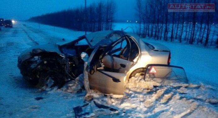 Авария случилась на трассе в Альметьевском районе Татарстана. В результате заноса прицеп фуры снес легковушку. Есть пострадавшие.
