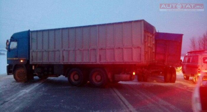 На трассе в РТ после заноса прицепа фуры произошло ДТП. ФОТО