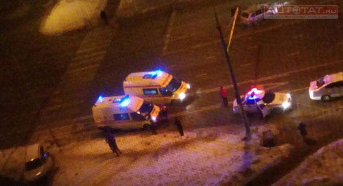 Авария случилась в 22:37 на пересечении ул. Чистопольская и Мусина. Известно, что 50-летний водитель LADA Kalina не уступил дорогу и врезался в BMW X3. От удара иномарку выкинуло на тротуар, где стояла 21-летняя девушка.