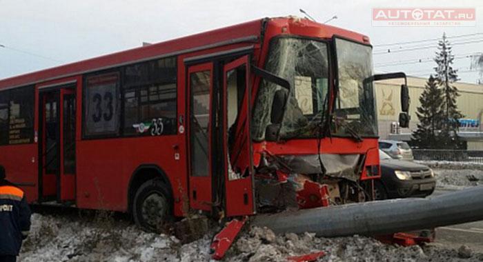 В Госавтоинспекции нам сообщили, что авария случилась в 13:10, когда 28-летний водитель автобуса НЕФАЗ 5299-30-32 (маршрут №33) двигался по пр. Ямашева. Напротив дома №16 в нарушение п. 10.1 ПДД он не выбрал безопасную скорость движения, не справился с управлением и врезался в столб.