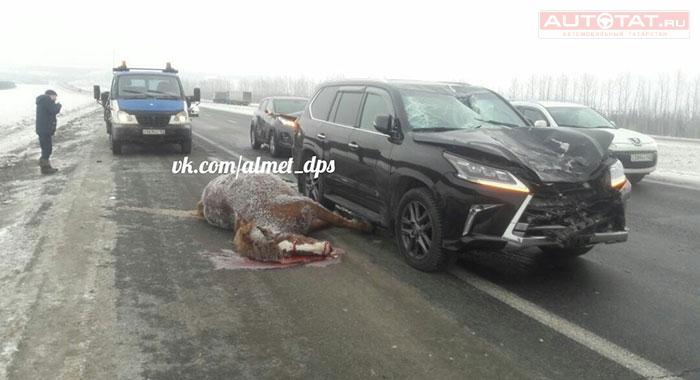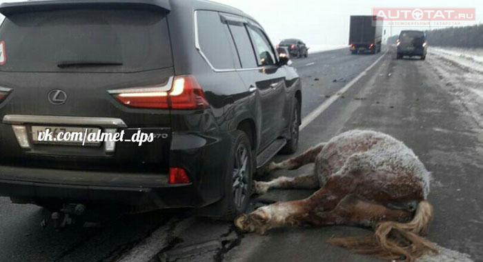 В Татарстане Lexus насмерть сбил лошадь. Появились фотографии.