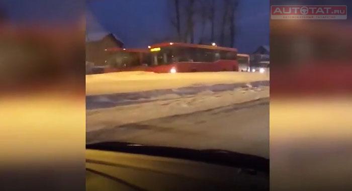 Сегодня утром в Казани столкнулись три автобуса. Видео очевидцев