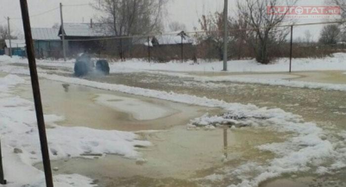 Жители татарстанской деревни рассказали в соцсетях, что затопило не только дворы, сараи и погреба, но и улицы. Например, по центральной дороге можно проехать только на лодке.