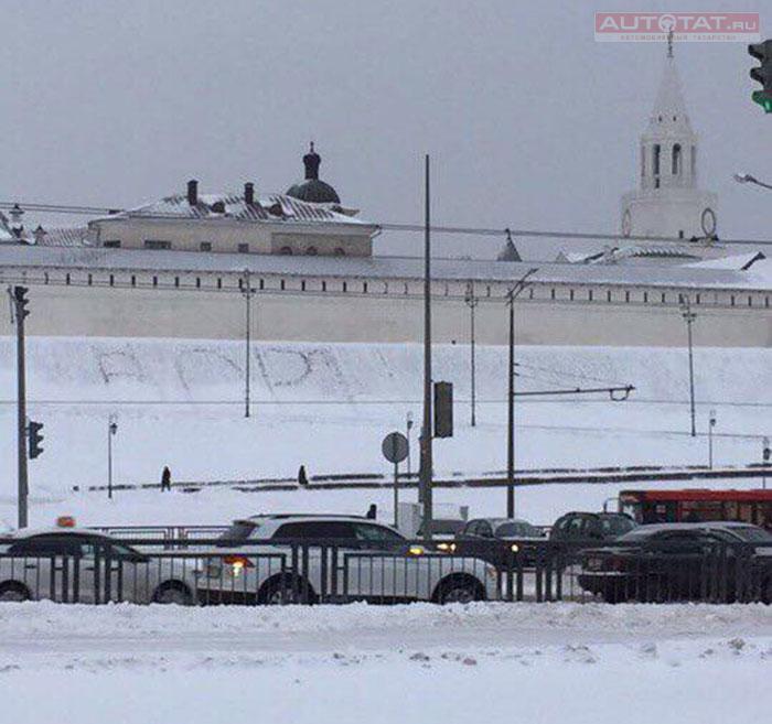 Под стенами Казанского кремля вытоптали слово «Воры».