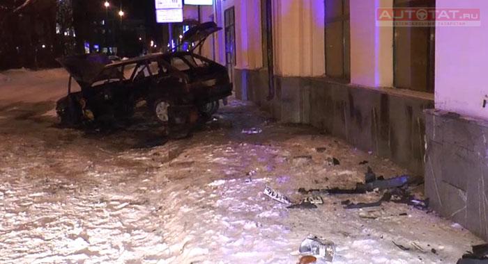 Появились подробности утреннего ДТП в Казани, в результате которого ВАЗ-2114 врезался в стену дома и загорелся.