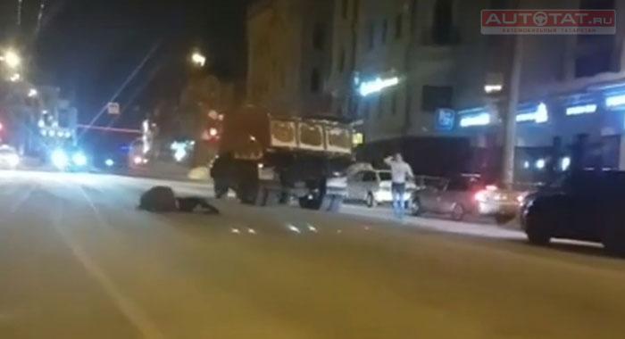 В центре Казани пьяный мужики устроили драку на проезжей части. ВИДЕО