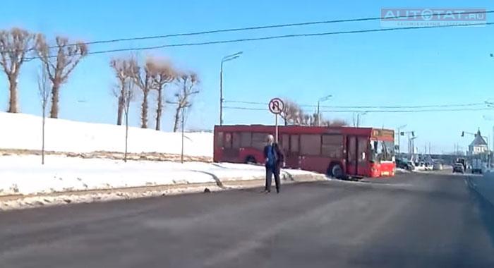 Пассажирский автобус застряли в снегу у цирка в Казани. ВИДЕО