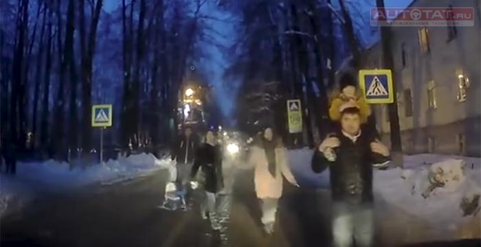 В соцсетях появилось видео с неприятным дорожным инцидентом с участием группы пешеходов и водителя, предположительно, из Казани.