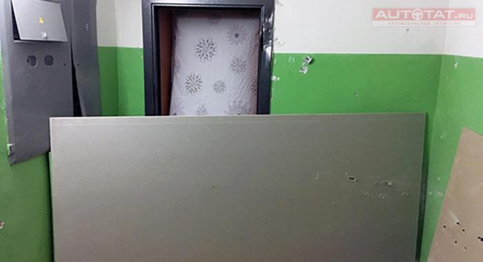 Уже после того, как все закончилось обычный казанский подъезд напоминал настоящее поле боя. Везде были видны следы от дроби в стене, а на пятом этаже повсюду разбросаны куски мозга и лужи крови. Зеленые же стены все были забрызганы бурыми пятнами крови.
