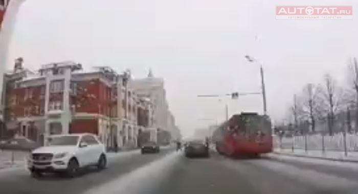 Обратите внимание, что автору ролика пришлось применить также экстренное торможение - на записи отчетливо слышно, как работает система ABS в условиях гололеда.