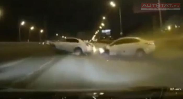 В Казани Hyundai протаранил Geely. Публикуем видео момента столкновения.