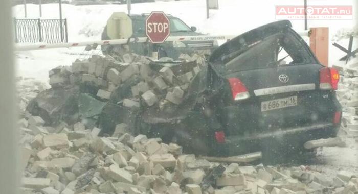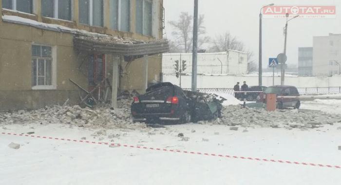 В Казани водитель чудом выжил - на его авто обрушился фасад здания.