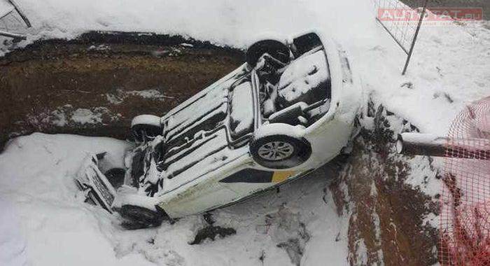 В Казани записали на видео, как вытаскивали из ямы автомобиль «Яндекс. Такси».