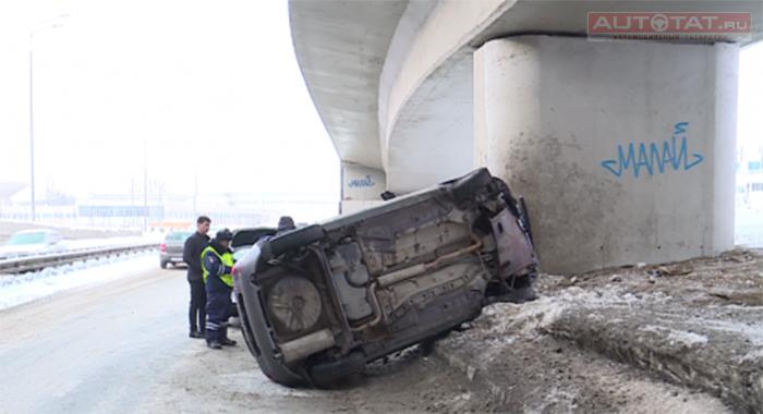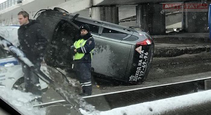 Сегодня утром под Кремлевской дамбой перевернулся автомобиль. Об этом сообщают казанские пользователи в соцсетях.