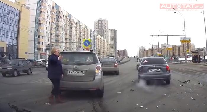 Женщина на иномарке устроила ДТП в Казани, есть видео
