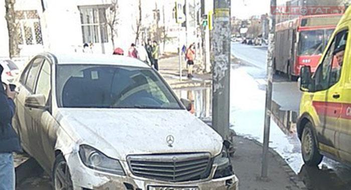 В Казани "Мерседес" снес столб и школьницу на тротуаре