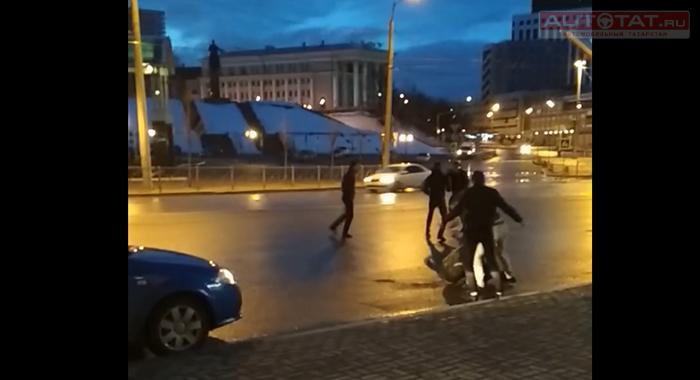 В Казани на проезжей части подрались пьяные парни. ВИДЕО