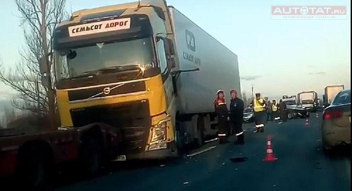 Татарстанский дальнобойщик попал в массовое ДТП на трассе М-7