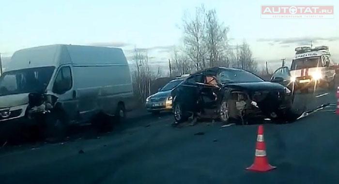 От удара иномарку развернуло и в нее на скорости влетел фургон Peugeot. Отметим, что татарстанский дальнобойщик задел другой грузовик из Санкт-Петербурга.