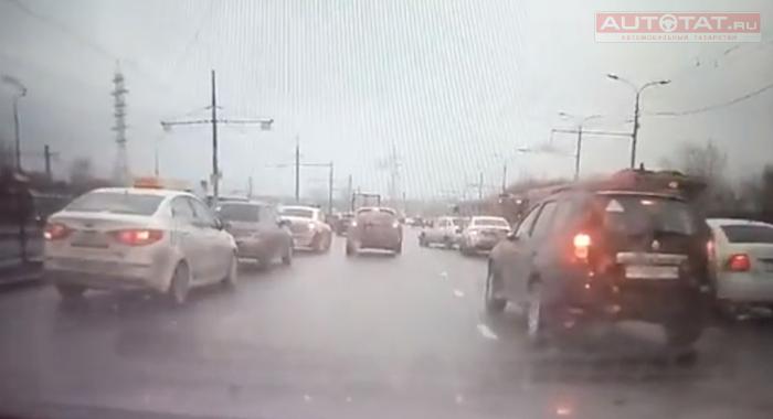 Казанец выложил в сеть момент нелепого ДТП недалеко от Речного техникума. К счастью, никто не пострадал, чего нельзя сказать об автомобилях.